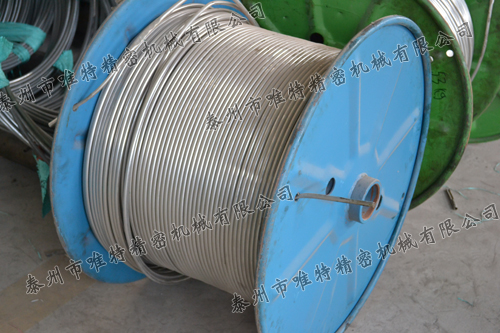 我公司生產(chǎn)不銹鋼無(wú)縫毛細(xì)管,不銹鋼無(wú)縫光亮盤管,直管。外徑0.3-16,壁厚0.1-1.5,材質(zhì)201,304,316L,321,310S等均有現(xiàn)貨。單盤能達(dá)到15000米,耐壓40mpa以上,無(wú)泄漏,內(nèi)外光亮。